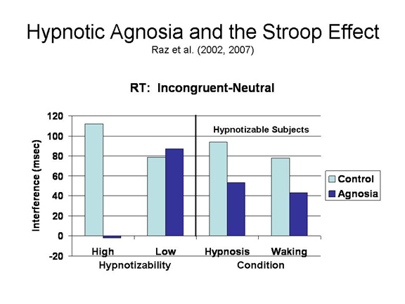 Raz, A., Shapiro, T., Fan, J., & Posner, M. I. (2002). Hypnotic suggestion and the modulation of Stroop interference. Archives of General Psychiatry, 59, 1155-1161.