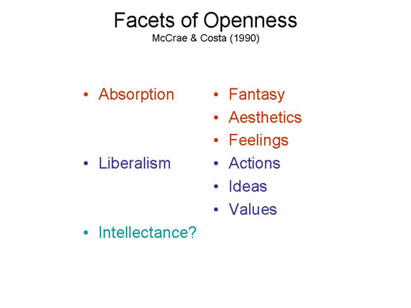 McCrae, R. R., & Costa, P. T. (1990). Conceptions and correlates of openness to experience. In S. R. Briggs, W. H. Jones & R. Hogan (Eds.), Handbook of Personality Psychology (pp. in press). New York: Academic.