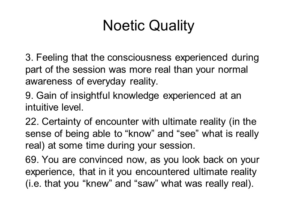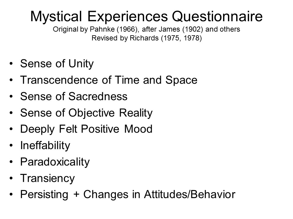 Legal restrictions on the availability of psychedelic drugs to researchers, as well ethical and legal restrictions on researchers, have effectively prevented much research on these "consciousness altering" substances from being conducted. Moreover, the environment in which such research has been conducted has been distorted by the "recreational" use of many of these substances, such as marijuana and LSD. Because most of the available research on the mental (as opposed to physiological) effects of psychedelic drugs is impressionistic and anecdotal, they did not get much attention in this course. But in the 2010s, with the trend toward legalization of marijuana and other psychedelic drugs for medical and recreational use picking up steam, it seemed that some actual research might get conducted, and so it seemed appropriate to fill out the story.