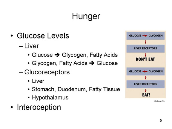 - The liver keeps blood glucose levels roughly constant. If there is too little glucose in the bloodstream, signals from the liver will initiate eating behavior. If there is too much glucose in the bloodstream, the liver will send signals that terminate eating behavior.