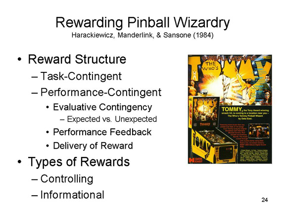 The upshot of this study is that rewards have at least two functions: they control performance, and they provide information about performance. Rewards that are perceived as controlling do undermine intrinsic motivation; but rewards that manage to provide information, without being perceived as controlling, do not undermine IM, and may even enhance it.
