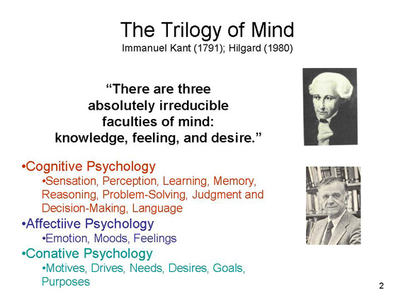 In this course, we will follow the Kantian doctrine, that both emotion and motivation are irreducible faculties of mind, and treat them separately.