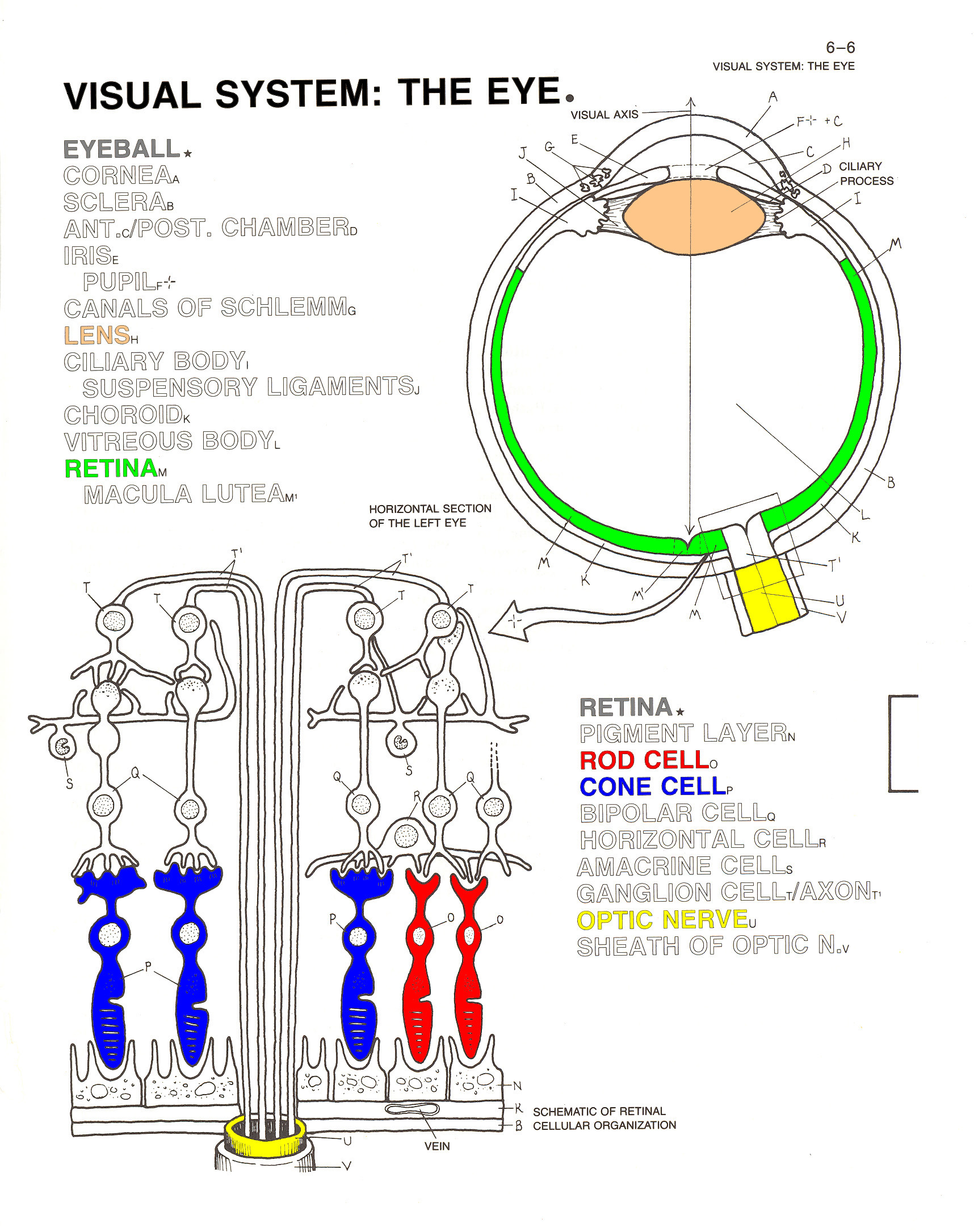 The neural impulse is then transmitted to the cerebral cortex of the brain (such as the primary visual area of the occipital lobe) via various neural pathways (such as the optic nerve).