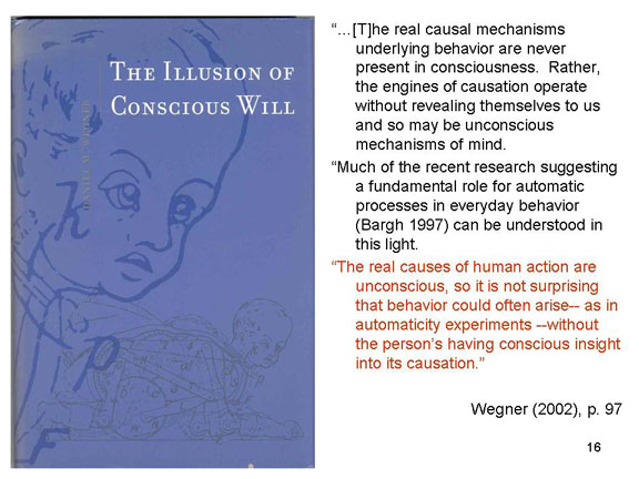 Wegner, D. M. (2002). The illusion of conscious will. Cambridge, Ma.: MIT Press.