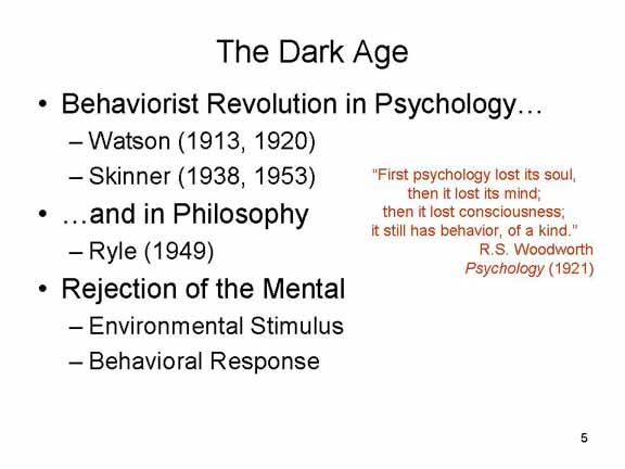 cognition at all levels, the dark days of behaviorism descended on the field. In
