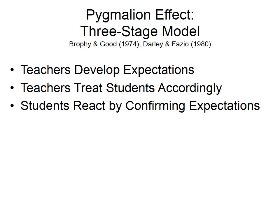 different expectancy confirmation effects:At a somewhat higher level of analysis, these studies reinforce the distinction between the physical environment -- temperature, humidity, elevation, pollution, noise level, and the like -- which is the province of ecological (or environmental) psychology, and the social environment of other people -- their presence and their activity, their expectations, demands, and rewards -- which is the province of social psychology. But while much of classic experimental social psychology is focused on the objective social environment, as it would be described by a third person, the cognitive perspective on social interaction focuses on the subjective social environment, as it is cognitively constructed by the individual actors in a social situation.