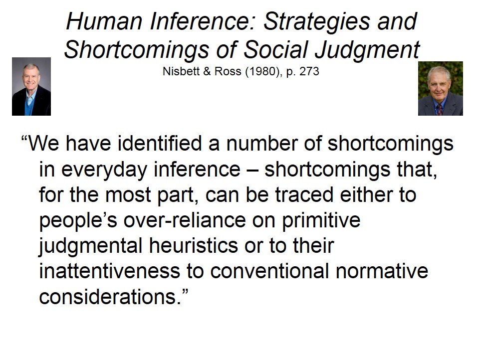 The work on heuristics and biases laid the foundation for a broader view that most social cognition, and therefore most social behavior as well, is automatic in nature -- closer to reflexes, taxes, instincts, and conditioned responses than to deliberate, conscious, thoughtful action (Bargh, 1984).