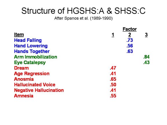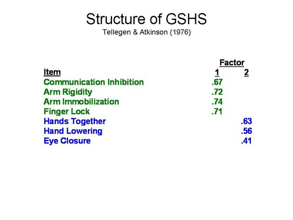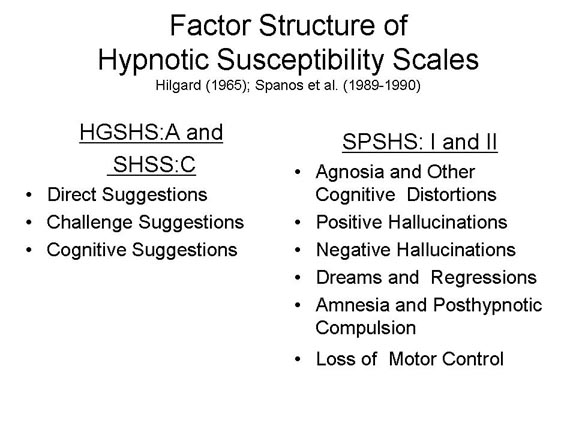 differences in hypnotizability in terms of a single sum score, factor analyses