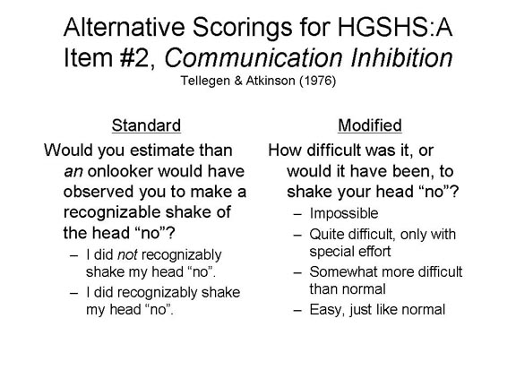 contrast to the dichotomous scoring of the Stanford and Harvard scales, the