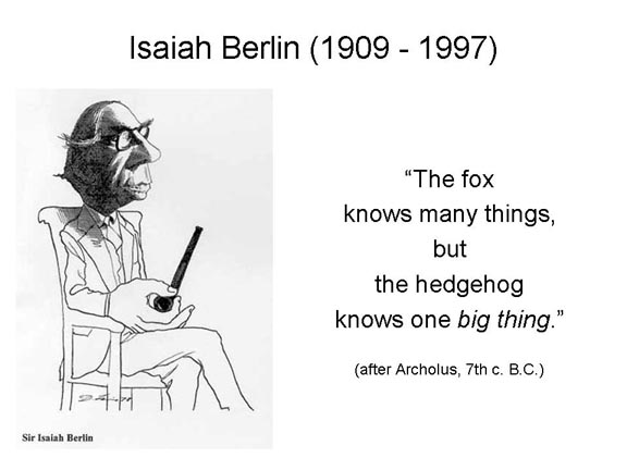 "The fox knows many things, but the hedgehog knows one big thing." A nice turn of phrase, but as Berlin himself cautioned us: