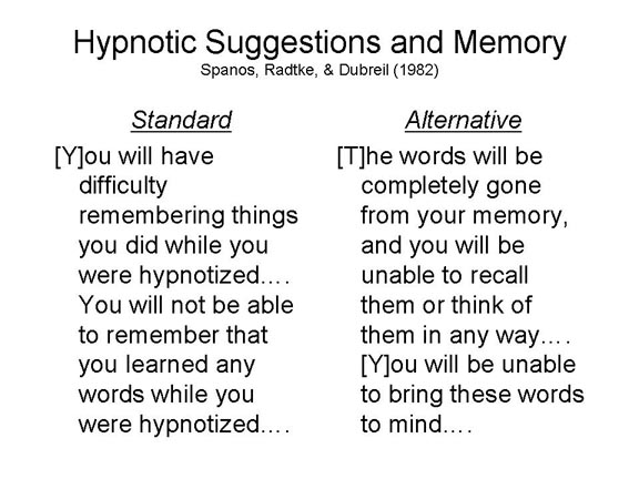 Spanos, N. P., & Bodorik, H. L. (1977). Suggested amnesia and disorganized recall in hypnotic and task motivated subjects. Journal of Abnormal Psychology, 295-305.