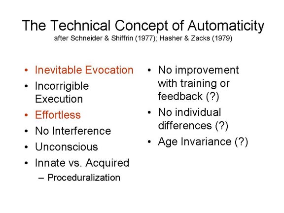 of the cue. All by itself, this violates a fundamental feature of automaticity,