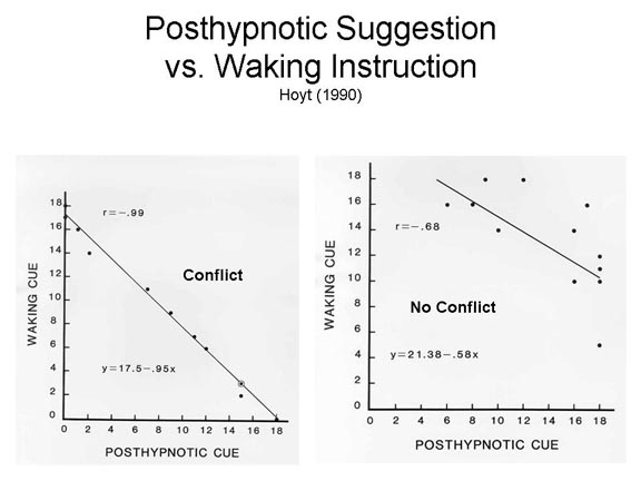 Interestingly, another form of neodissociation theory, proposed by Woody and Bowers (Woody & Bowers, 1994), holds that hypnotic involuntariness is by no means illusory, and reflects a disruption of executive control similar to that found in neurological patients with frontal-lobe damage . Moreover, Spanos proposed a version of social-cognitive theory which holds that hypnotic involuntariness is illusory, by virtue of the subject’s misattributions concerning the causes of his or her behavior. So it’s not the case that experimental findings on automaticity necessarily strike blows for one side, and against the other. Spanos could have cited Hoyt’s experiment as evidence in favor of his theory, and against that of Woody and Bowers. By the same token, Hoyt’s finding that posthypnotic response is not automatic, at least in the technical sense of the term, is problematic for both Woody and Bowers, who are dissociation theorists, and for Kirsch and Lynn, who are not. The point is that each theory needs to be tested in its own terms. And when we do this, we will find that each theory corrects itself, just as my findings about spared implicit memory caused me to abandon my original theory that posthypnotic amnesia resulted from a disruption of the search process in memory retrieval (Kihlstrom, 1985).