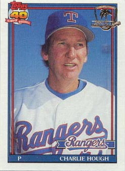 Charlie Hough's 1991 Topps Card featuring him as a Ranger