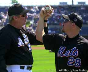 Charlie Hough and Dennis Cook in Spring 2001 with the Mets *